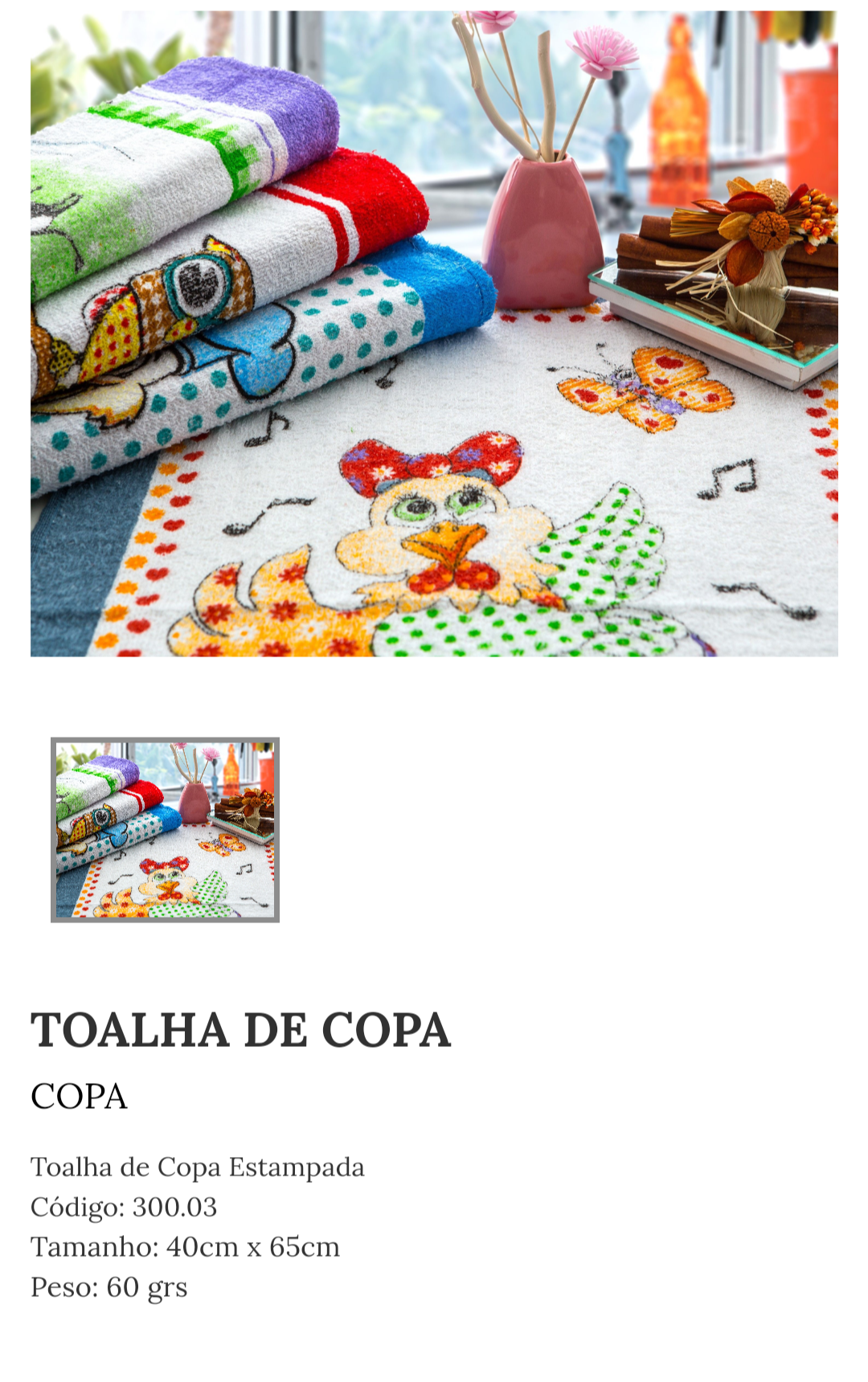 Toalha de copa estampada 40cm x 65cm